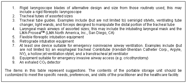 Figure 2: Suggested contents of the portable storage unit for difficult airway management - ASA Taskforce on Difficult Airway Management8.
