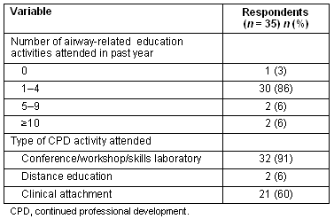 Table 3: Participation in airway-related continuing professional development activities