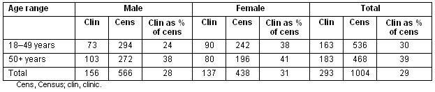 Table 1: Age profile of the skin clinic population; source: 2006 census data for non-Indigenous adults11