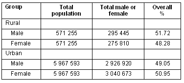 Table 1: Distribution of males and females in rural and urban locations in New South Wales, using the Australian Bureau of Statistics defined rural/urban localities20