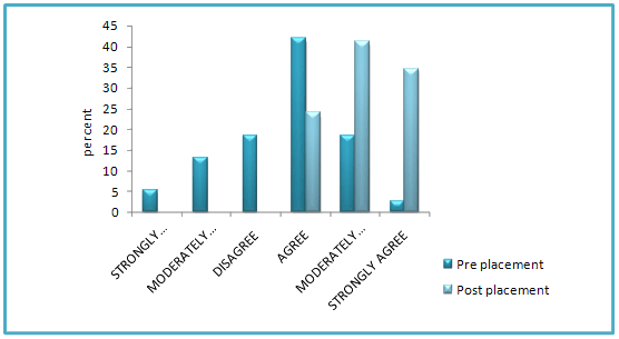 Quantitative analysis of the data used SPSS v15 (SPSS Inc; Chicago, IL, USA) to explore response patterns and change from pre- to post-placement attitudes. Given the number of cases, it was decided not to test for statistical significance tied to change or differences across variables or time. Rather, analysis focused on descriptive quantitative analysis. Analysis highlighted some concern about the way the evaluative questions/statements are presented in questionnaires. Despite piloting, the use of alternate positive and negatives statements invoked a possible double negative interpretation linked to complex questions about skill and knowledge. Data from these questions were consequently not used in analysis or interpretation.