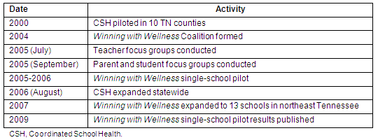 Table 1: Timeline of Tennessee Coordinated School Health Project, focus group and Winning with Wellness activities