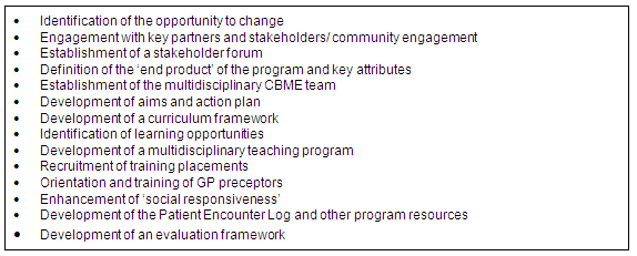 The key steps in the development of the urban CBME program are summarised in Figure 1 and elaborated below. These steps were not discrete activities, nor was program development a simple linear process - steps occurred in parallel and were often interconnected.