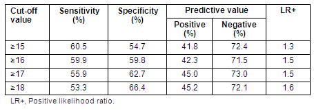 Table 4: Sensitivity and specificity of menopause rating scale cut-off values for predicting 'referral to a gynecologist for severe menopausal symptoms'