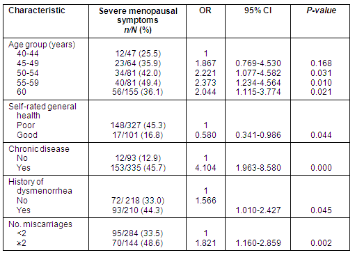 Table 5: Independent predictors for severe menopausal symptoms