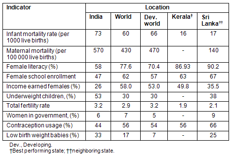 Table 1: Social indicators in India compared with other locations6