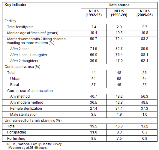 Table 2: Key indicators in fertility and contraceptive use, India9