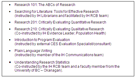 Figure 1: Interior Health Research Skills Training Workshop Series