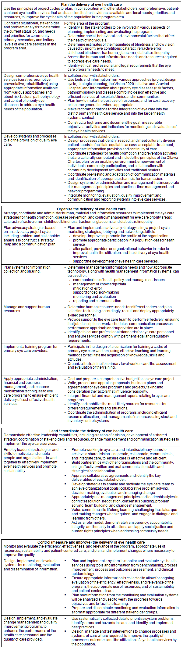 Appendix I: Competencies for eye care managers: University of Cape Town Postgraduate Diploma in Community Eye Health