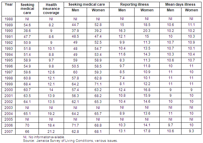 Table 1: Percentage of those seeking medical care, self-reported illness, and gender composition of those who report illness and seek medical care in Jamaica, 1988-2007