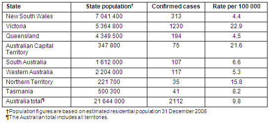 Table 1: Confirmed H1N109 infection rates in Australian states and territories at the end of the Contain Phase, 17 June 2009