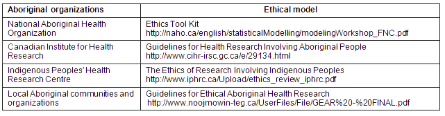23. Canadian Institutes of Health Research. CIHR Guidelines for Health Research Involving Aboriginal People. (Online) 2007. Available: http://www.cihr-irsc.gc.ca/e/documents/ethics_aboriginal_guidelines_e.pdf (Accessed 19 August 2009).