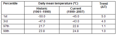 Table 2: Comparison of historical and recent distributions of daily mean temperatures in Yakutsk