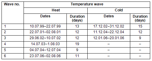 Table 3: Dates and duration of temperature waves in Yakutsk during the study period