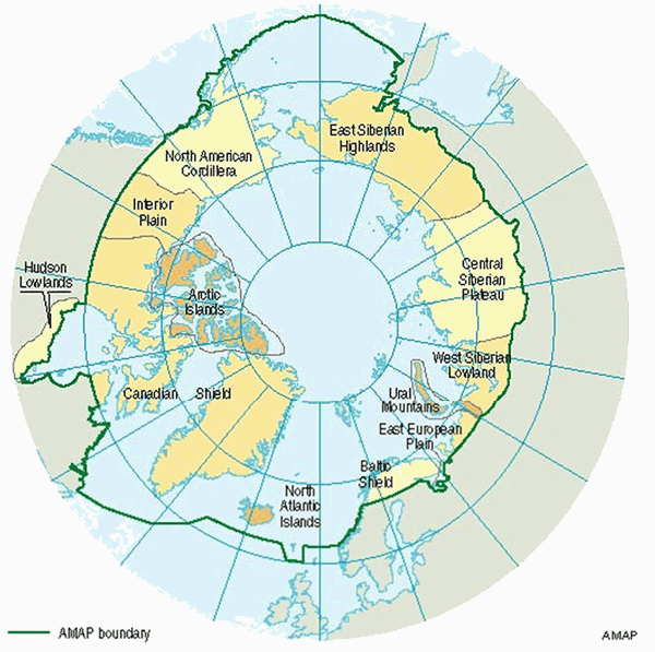 Figure 1: The Circumpolar area for Arctic Monitoring and Assessment Programme (AMAP) (www.amap.no).