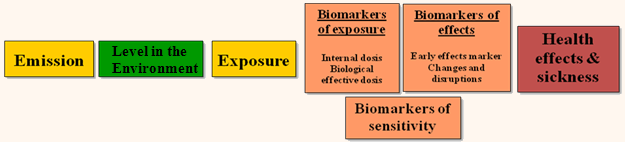 Figure 2: Determination of bio-monitoring factors can integrate environment exposure, effects, individual sensitivity and health risks.