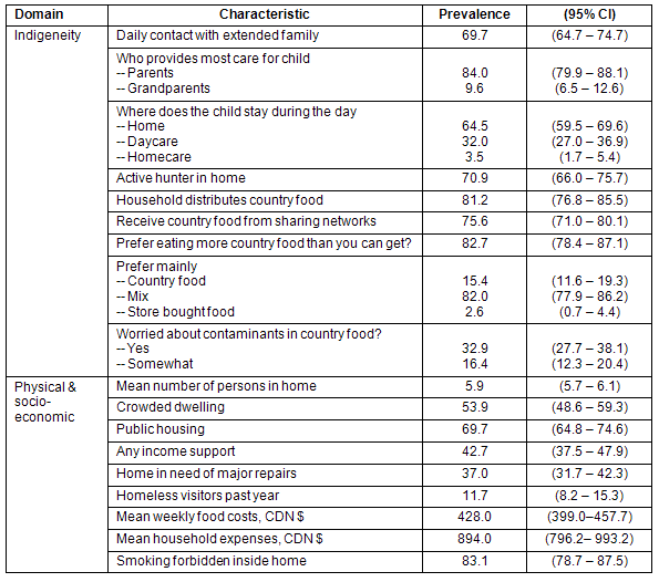Table 1: Weighted characteristics of indigeneity and physical and socio-economic environment: Nunavut Inuit Child Health Survey, 2007-2008