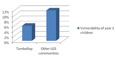 Figure 1: Vulnerability of year 1 children: summary indicator comparing Tambellup's 2007 Australian Early Development Index results with those of the Lower Great Southern Region.
