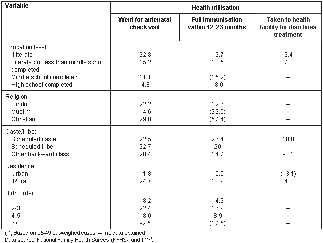 Table 5: Background variables affecting percentage change in health utilisation in Andhra Pradesh, India, between NFHS-I and NFHS-II