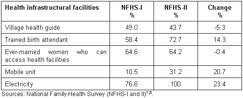 Table 1: Percentage change in health infrastructure facilities in Andhra Pradesh, India, between NFHS-I and NFHS-II