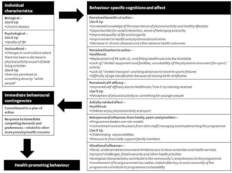 With regard to Pender's health promotion model mentioned previously, Figure 2 outlines the main components of this model and indicates areas of alignment of this model with the DHLP.