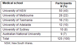 The breakdown of participants by medical school is presented (Table 1).