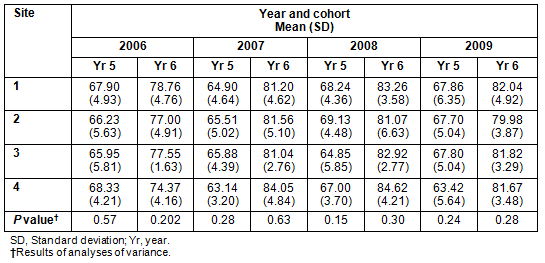 Table 2: Mean test scores for students in Years 5 and 6 at the four clinical school sites