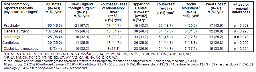 Specialty physician shortages