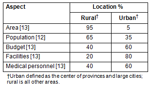 Table 1: Aspects of rural and urban health in Thailand12,13