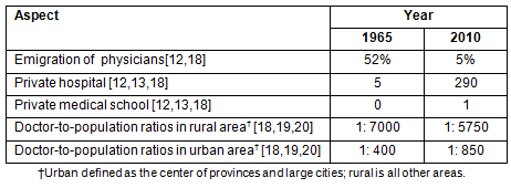 Table 2: Situation of rural health services before and after the implementation of implementation of mandatory service in 196812,13,18-20