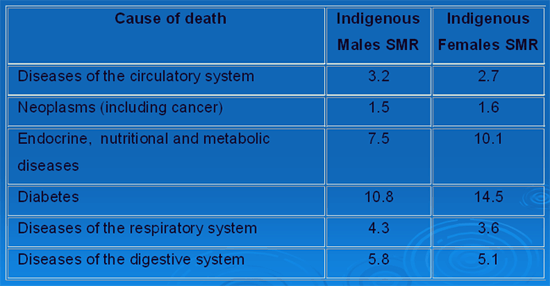 Heart disease is the single biggest killer of Indigenous Australians and this represents a burden of unnecessary suffering. The word 'unnecessary' is the key here, for we are all going to die some day, and sickness touches us all. However our task is to eliminate as much unnecessary sickness and death as is possible, in this case among the Indigenous population. The suffering is clearly unnecessary, as can be seen by comparing mortality and morbidity rates for the Australian Indigenous and non-Indigenous populations. This also applies to the significantly higher rates of communicable diseases among Indigenous peoples (Fig2)4.
