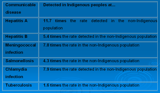 Figure 2: Communicable diseases in Indigenous peoples, reported as multiples of the rates in the non-Indigenous population (2004-2005)4.