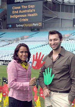 The human and corporate foundation of the Close the Gap Campaign is a collective of peak Indigenous and mainstream health bodies, health professional bodies, NGOs and other institutions (Fig5). The Campaign is lead by a Steering Committee that operates by consensus, taking direction from an Indigenous Leadership Group (Fig6). The first meeting of the Campaign Steering Committee was held after the Social Justice Report10 was tabled in the Australian Parliament in March 2006. Following this, in April 2007 the Campaign was launched by patrons, Olympians Catherine Freeman and Ian Thorpe (Fig7).