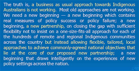 - The National Indigenous Reform Agreement in November 2008