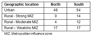 In accordance with this definition, 93% of Ontario's population resides in the south and 7% resides in the north20. The distribution of the population of Ontario that resides in northern and southern locations by MIZ category is outlined (Table 1).