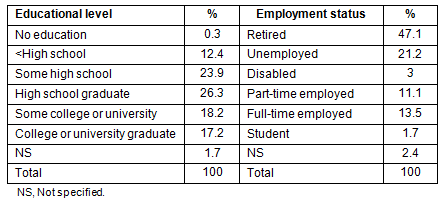 In terms of employment status, less than half the users were retired, 21% were unemployed and 3% were disabled. More than half of those who were economically active worked part time. Such data strongly indicate that the vast majority (approximately 72%) of users were economically inactive and, therefore, in greater need of the subsidized medical transportation service.