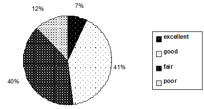 Health profile of users: To assess use of the Connections service by communities most in need, data were collected on service users' self-assessed health profile, including health conditions and the variety and frequency of health problems for which the users were seeking treatment. Users rated their health as poor, fair, good, and excellent (Fig1). Over half of the users (52%) rated their health as either poor or fair; of those with better health, 40% rated their health as good; only 7% assessed their health as excellent, indicating that the majority of clients were not in good health.