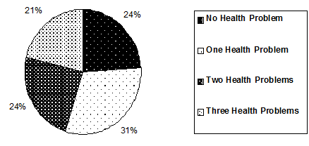 In terms of health problems reported by users (Fig2), the majority (76%) reported at least one health problem, including those who rated their health as good or excellent; and over half (55%) had at least 2 health problems, indicating that those using the service are not generally in good health.