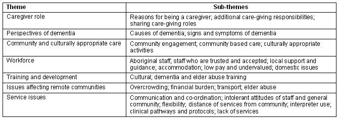 Table 1: Themes and sub-themes of factors impacting on the delivery of quality services to Aboriginal people living with dementia