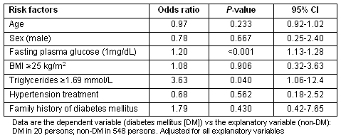 Table 1: Odds ratios for diabetes mellitus by multiple logistic regression analysis