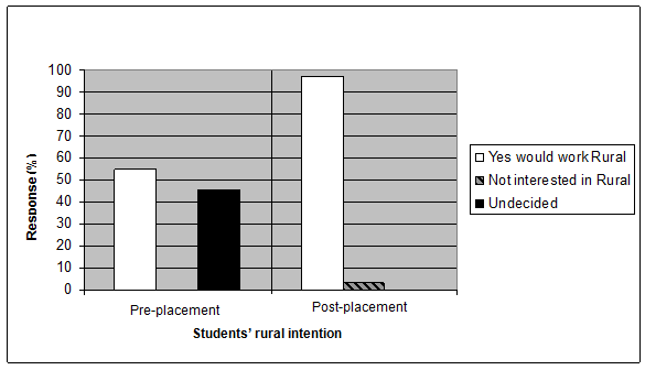 Figure 3: Rural intentions of the students pre- and post-placement.