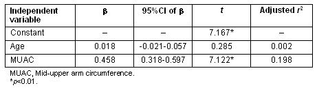 Table 3: Results of multiple regression analysis of BMI on age and mid-upper arm circumference