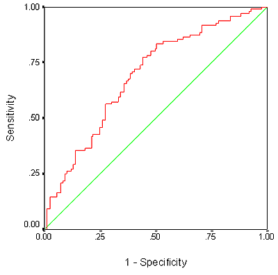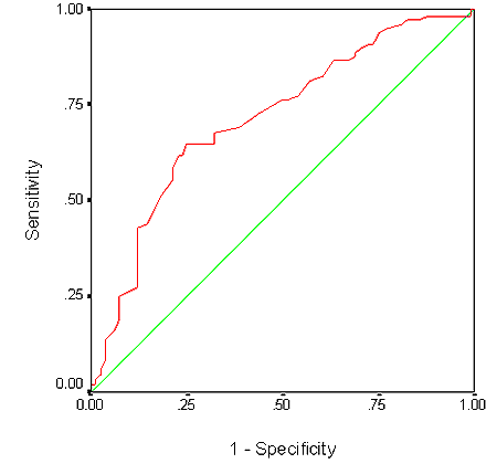 Figure 1: Receiver operating characteristic curve of mid-upper arm circumference and chronic energy deficiency.