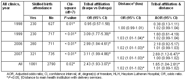Table 2: Tribal affiliation and distance to health institutions compared with rates of skilled birth attendance at all reproductive-and-child-health sites