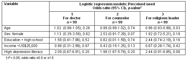 Table 4: Logistic regression models predicting perceived need for a doctor, counselor and religious leader