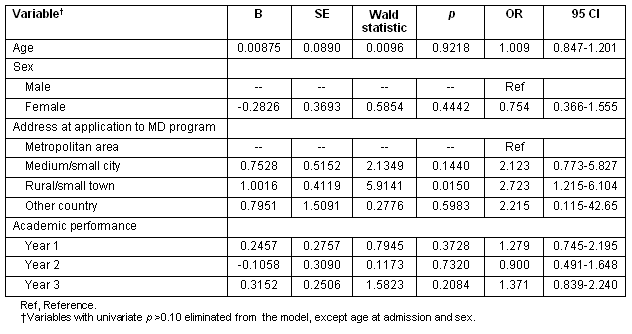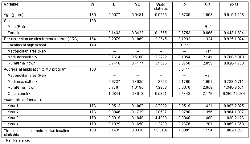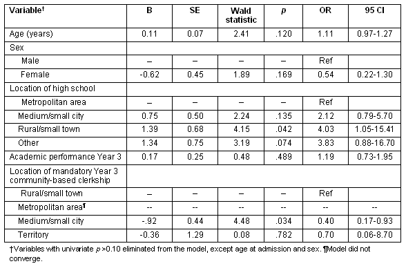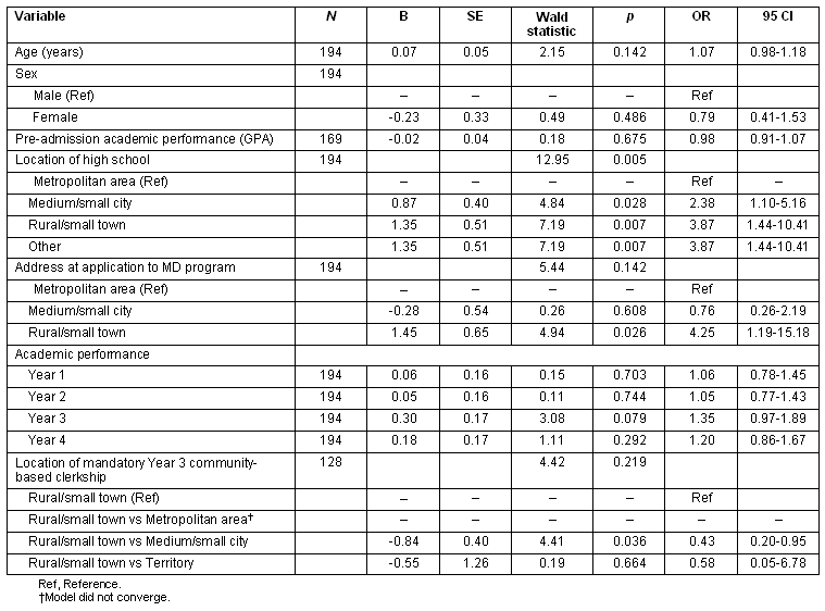 Table 2: Univariate logistic models for MD graduates from Université de Sherbrooke