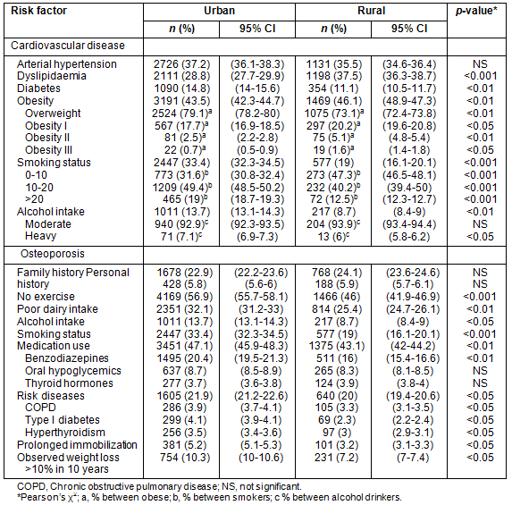 Table 2: Prevalence of risk factors for cardiovascular disease and osteoporosis according to home location