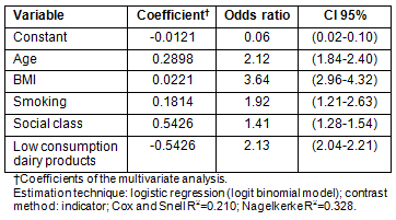 In the logistic regression analysis, the variables age, BMI, smoking, social status and low consumption of dairy products contributed significantly and independently to the severity of menopausal symptoms (Table 6). The variable home location did not influence this severity.