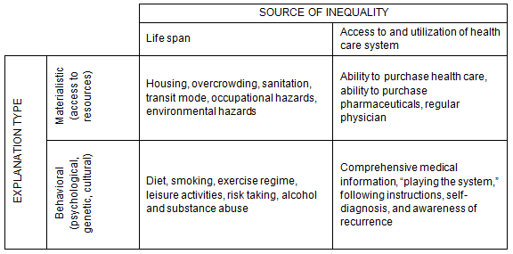 Figure 1: Conceptual decomposition of factors explaining health inequalities.