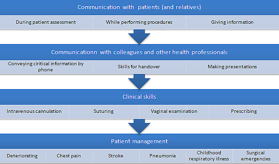 The first learning objective is generic and could apply to any program designed to support IMGs. The others relate to clinical and professional skills typifying emergency situations which junior doctors and IMGs in a new clinical context are likely to experience.